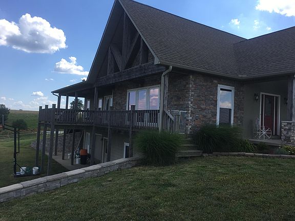 100 acre cattle/hay farm with a excellent 4 Bedroom 3 Bath, 4650 Sq Ft home with walkout basement. Check out the stunning views from the decks and from every window. Home features open floor plan, gas fireplace, a huge kitchen with 2 islands, Hickory cabinets, gas range, and walnut hardwood flooring, furnishings convey. Two bedrooms and baths upstairs. The central staircase leads down to another large family room, two bedrooms and a large bath, maintenance room, and a one car garage. A detached 3 bay garage, large barn with stalls and a tack room along with a commodity barn complete the outbuildings. Farm is fully fenced and crossed fenced with 6 ponds.