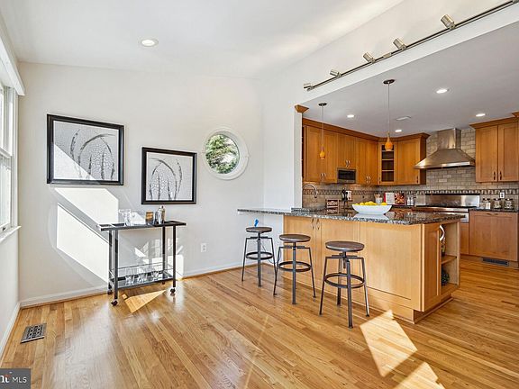 OFFERS DUE TUES 3/28 @3 PM. Updated sun-filled 5 BR 4 BA contemporary in sought after Glen Echo Heights with over 3,900 sq. feet. This home features a gourmet eat-in kitchen with granite, S.S. appliances, Wolf range with access to deck & large level backyard. There is a spacious living room w/ a two-story atrium, fireplace, and large dining room that is great for entertaining. Expanded primary Bedroom w/ walk in closet, sitting area, balcony & updated primary bath. Family room w/fireplace, walls of built in shelving for home office and access to the backyard. The fifth bedroom is great for guests or office with access to a full bath. Bonus rec. room, gym or possible au pair suite w/separate entrance. Move in ready: refinished hardwood floors, new carpet, freshly painted, new roof, & owned solar panels that offer a monthly energy credit. Close in Bethesda: walk to C&O trail, Crescent trail, Mohican pool, Sangamore shops. Close to downtown Bethesda, DC, & VA. Wood Acres, Pyle, Whitman Cluster