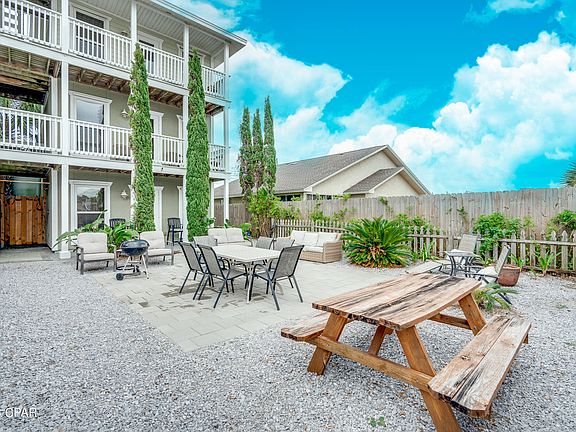 CURRENTLY UNDER CONTRACT, SELLER WILL CONSIDER BACKUP OFFERS **SHORT-TERM RENTAL CLOSE TO THE BEACH** Walk to Schooner's and the beach from this 4BR/2.5BA beach home on the far east end of Panama City Beach. Offered fully-furnished and ready to rent or enjoy, this wonderful home features a large, private backyard with PLENTY of room for a potential pool. This coastal retreat is just steps from the area's famous sugar-white sands and the Gulf, but the gate on the back fence makes it that much easier to get to the beach. Inside, the kitchen, dining and main living space are on the ground floor. On the second floor you will find two bedrooms, the laundry room and one of the full bathrooms and on the third floor you will discover two more bedrooms and another full bathroom. Enjoy the balmy gulf breeze and beautiful views from the nice balconies on the second and third levels or walk up to the viewing deck above the third floor for really fantastic views of the lagoon and beach. It is an awesome place to watch the fireworks around the 4th of July holiday! Updates include a new roof in 2019 and some recent interior and exterior painting. Make it a point to see this amazing beach home today!