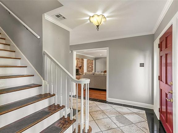 Stately brick home on corner lot in demand neighborhood. Needs foundation repair; see property disclosures. Home is currently in livable condition. Granite and stainless kitchen, spacious den and keeping room, large utility room. Renovated master bath w/soaker tub and custom shower. Flagstone paved patio and pond in back. Unfinished flex space could be home office, guest w/suite or au pair apartment. Priced to allow updates or repairs; foundation repair estimate available. LOTS of potential to update & stay well within the neighborhood comps! New roof after Hurricane Ida, HVACs are 6 years old and 2 years old.