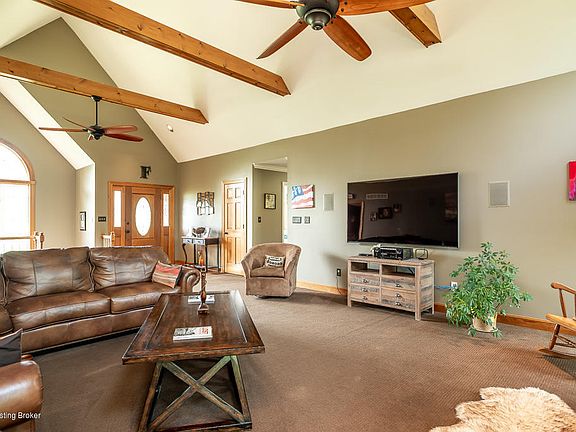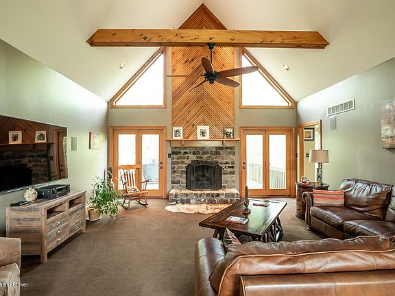 MOTIVATED SELLERS!! Welcome home to the hard to find walkout ranch in Oldham County! The home's first impression offers soaring ceilings and exposed wood beams upon entry. The focal point of the family room is the wall of windows flanking one of the home's two gas fireplaces. The chevron board calls attention to the two-story, vaulted ceiling. The eat-in kitchen is equipped with abundant cabinetry and a breakfast area designed with a bay window. Host BBQ's and entertain friends alfresco style on your large deck with a serene back drop of mature trees. The bedroom wing houses three bedrooms and two full bathrooms. The first two bedrooms are bright and show off beautiful trim details. The generous master suite accesses the deck and is detailed with a tray ceiling and updated en-suite