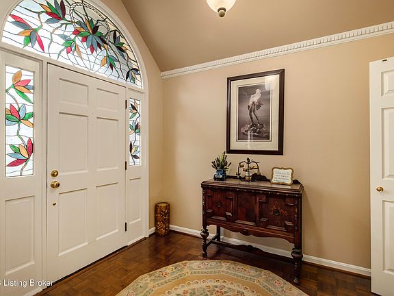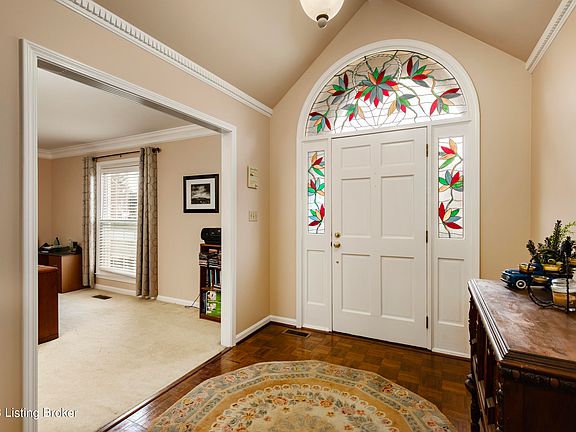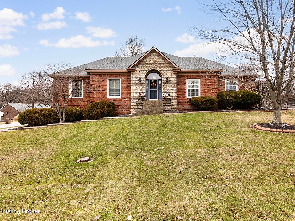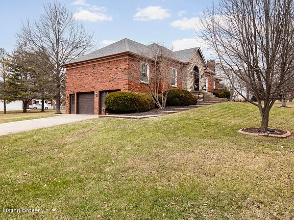 Ranch in Heather Hill. Just a Golf Carts ride away from the Oldham County Country Club. Enter to the vaulted foyer with parquet hardwood floors and dentil accent molding. To the right is a good sized living room that is currently being used as an office and includes crown molding. The kitchen has hardwood floors, granite counters, tile backsplash, tons of cabinets, center island, pantry, planning desk and stainless appliances. There is also an eat in area off the kitchen that has a vaulted ceiling with a brand new sliding door that leads to the deck. The vaulted great room features a fireplace, crown molding and 3 built in bookcases and has a 2nd newly installed door to the deck. Primary bedroom has crown mold, walk-in closet and the primary bath includes tile floors, dual vanity, separate shower and tub. There are 2 additional bedrooms on the main level and a full bath. The walkout basement is partially finished and you have the opportunity to add a 4th bedroom and add a 3rd full bath (rough in present) in the unfinished area. Outside, enjoy your corner lot and flat backyard from your deck or patio. All this and just around the corner from the Oldham County Country Club plus minutes to the Oldham County Aquatic Center, Dog Park, Oldham County Youth Football, Oldham County Youth Soccer, Oldham County YMCA, I-71, Award Winning Oldham County Schools, and a New Kroger is under construction at exit 18.