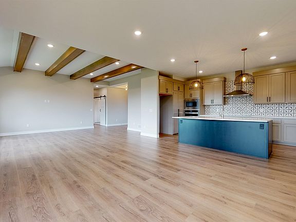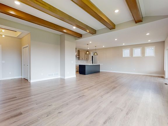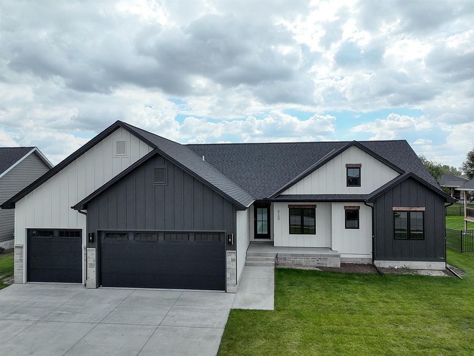 IMPRESSIVE NEW HOME IN MEADOW RIDGE WITH A FARM HOUSE DESIGNED EXTERIOR AND WELCOMING FRONT PORCH. OPEN FLOOR PLAN WITH EXTRA LARGE WINDOWS THROUGHOUT PROVIDING LOTS OF NATURAL LIGHT, DAYLIGHT WINDOWS IN FAMILY ROOM. KITCHEN FEATURES WHITE BIRCH CABINETS, GRANITE COUNTERTOPS, TILE BACKSPLASH, BUILT-IN MICROWAVE AND RANGE HOOD, LARGE CENTER ISLAND, HIDDEN WALK-IN PANTRY AND SS APPLIANCES. BEAMED GREAT ROOM CEILING. TRAY CEILING IN PRIMARY BEDROOM, EN-SUITE BATH W/ DOUBLE SINKS, ONYX SHOWER AND WALK-IN CLOSET, LVP FLOORING MAIN FLOOR LIVING AREAS, CARPET IN BEDROOMS. MUD ROOM/DROP ZONE AT OWNER'S ENTRANCE. 14X14 COVERED DECK. LP SMART SIDE SIDING. SPRINKLERS AND SOD INCLUDED. THIS IS A 6D RENDERING AND NOT EXACT TO THE BUILD.
