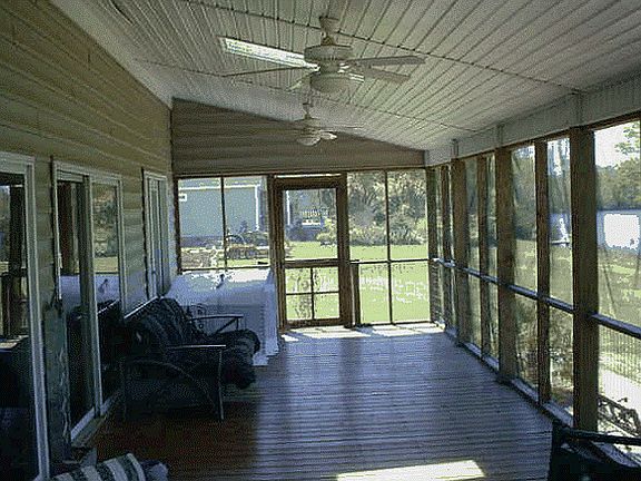 A 40-foot screened-in porch overlooks the lake, and 3 oversized sliding glass doors look out to that porch and then to the lake so you are at the lake when cooking or eating or relaxing and watching TV in the cool A/C on a hot summer day.