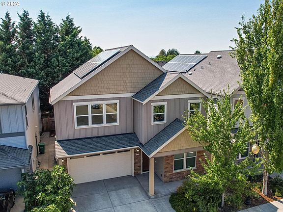 Nested in a peaceful neighborhood in the heart of Bethany with Schools, Shopping, restaurants schools close-by, this beautiful home boasts custom features like contemporary Kitchen backsplash and cabinets to the ceiling, FP tiles imported from Italy and custom-Made Prayer room. Full Bath and Bedroom on the Main, 2 tone Granite Island/Quartz counter tops with like New Chef Kitchen, Engineered Hardwood Floors, Carpet Accents, Gas Cook-top, plus Free-Standing Refrigerator included. Formal Dining Area, and Great Room with large windows for light. Upstairs you have Four More Bedrooms, including a Massive Primary Suite, with Walkin Closet, Soak Tub, His and Hers Sinks with Quartz and Tile counters and Tile shower. Laundry Room is Upstairs, with a sink, and Washer / Dryer included and Tankless water heater for Hot water. Backyard is fenced and private, with a deck area, and Stonework. Ample storage with enclosed space underneath stairs, Pantry in Kitchen and custom-made shelving in all Closets. Solar Panels are paid for in full, and house is certified with Earth Advantage Program Platinum Category, which confirms the quality of the construction and features are Energy/water/resource efficient with high quality Indoor air and built with environmental responsibility. One of the upstairs BR upstairs is equipped with 7.1 surround system wiring and walls are built soundproof for a perfect Media Room.