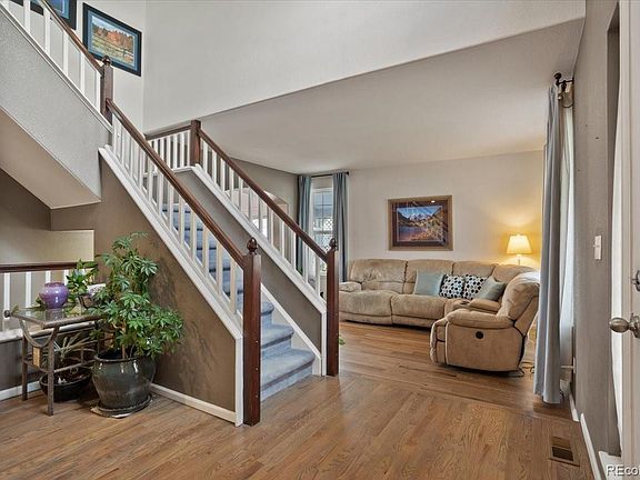 This beautiful 2-story home is a gem you won't want to miss! Updated features throughout, including new roof, freshly painted bedrooms, and new carpet installed in all rooms on the second floor and in the basement! The main level has beautiful hardwood floors, which nicely compliment the remodeled open-concept kitchen with custom cabinets and unique granite countertops. Enjoy the upgraded gas fireplace with quiet air circulating fans and a remote-controlled thermostat. The second floor has an extremely functional layout, with 3 bedrooms and a spacious loft that overlooks the open entryway. The loft is a perfect kid's area, home office or hobby space, but can easily be converted to an additional bedroom. The huge primary suite is more than generous in size, providing a perfect retreat for the homeowners, with a primary bath that includes a large, updated shower, a Roman bathtub, marble countertops with his and her sinks, and a walk-in closet. A second full bath on the upper level and a third full bath located on the main level have updated marble countertops and ceramic tile flooring. Off the main entryway is a fourth bedroom that is currently designed to be the optimal home office with French door entry. You'll love the large basement with brand new carpeting, new egress windows, loads of storage and a 1/2 Bath. The exterior landscape includes two covered decks joined by a beautiful flagstone patio and flagstone walkways. Other amenities include upgraded energy-efficient custom windows, newer gutters, a closed security camera system, new remote controlled ceiling fans with adjustable lights in all bedrooms, a multi-speed attic fan, and an upgraded cat5 fiber optic system to accommodate 1 gigabit internet cable speed for today’s families. This home is also located near popular Trails Rec Center of the Arapahoe Parks and Rec district, an exceptional community facility for aquatics, fitness and family friendly activities.