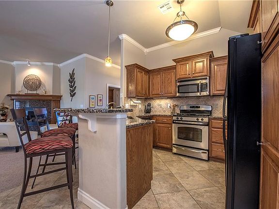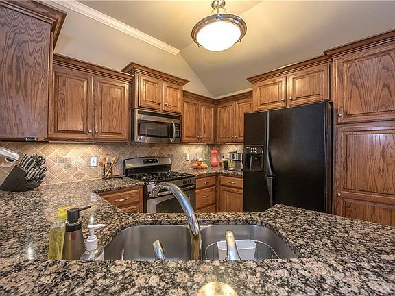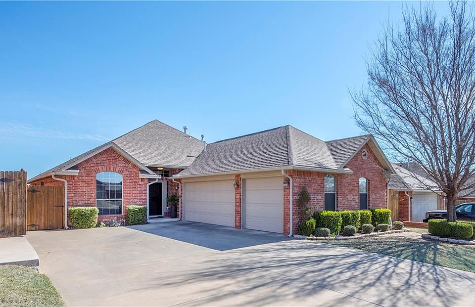 Cozy & Stunning Home in Quiet & Beautiful Gated community of Kiva Commons, minutes from Tinker AFB. HOA cover security system, lawn service. Liv room has open floor plan with neutral colors, majestic gas fireplace, high ceilings & beautiful crown molding. Kitchen has exquisite granite counters, travertine bsplash, SS appliances, double ovens, range with gas cook top. The master bed & ba features oversize walk-in shower, WP tub, double vanities, lots of storage, huge mirror, walk-in closet, & a door leading to covered back patio. Secondary rooms are Large w Spacious closets. Covered Patio w extended deck is perfect for entertaining. cultured marble window sills, automatic lights, underground sprinkle system on all sides of the yard, all rooms with ceiling fans. 3 Car Gar, storm shelter & walk up attic with stair access. Wonderful home ~ Don't wait!!