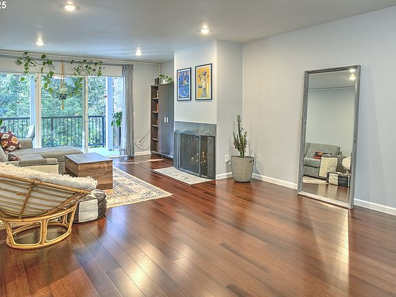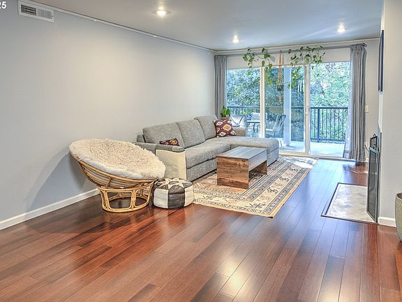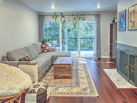 Spacious main-level condo with a large 8x25 private balcony overlooking Fanno Creek in prestigious Raleigh Hills. Newer kitchen with quartz counters, stainless steel appliances, and wood-burning fireplace. Wood floors, fresh interior paint, and upgraded lighting throughout. Central air conditioning. Carport with storage space plus an additional parking spot. Two bedrooms and two full baths with W/D in unit. Two deeded parking spaces (one covered carport) and 12x11 storage room adjacent to carport. HOA includes water, sewer, and trash. Major building repairs completed in 2022 include new roof, siding, terrace, railings, all windows, both patio doors, and entry door. Prime location near parks, schools, and bus lines. Quiet, parklike setting just minutes’ walk to New Seasons, and close to Multnomah Village, Hillsdale, Washington Square, and downtown Portland. Move-in ready with low HOA!
