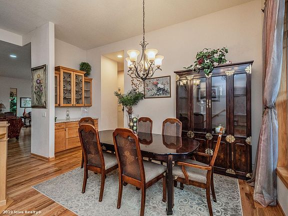 New Price Nestled in a group of executive home is this beautiful custom built ranch in the Johnston School District. Better than new with nearly 4600 finished square feet, 4 bedrooms and 5 bathrooms. The home backs to the Des Moines River, mature trees, a fire pit and completely private park-like backyard for children's play. First floor features a formal Living Room and Dining Room. A gourmet kitchen with huge center island. walk-in pantry and Butlers Pantry, granite, and stainless steel appliances. 2 Master bedroom suites with oversized walk-in closets. The finished walkout lower level features a full wet bar, theater room, surround sound, central vac, intercom, irrigation, custom window treatments, zone heating and air conditioning, and a non-conforming 5th bedroom. Attention to detail, and quality throughout.