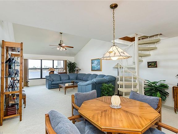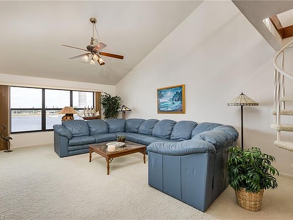 Great Opportunity to own this COMFORTABLE sailboat access condo ON A VERY PRIVATE CUL-DE-SAC AND IN the YACHT CLUB area, These CONDOS are well maintained, it feels like you are living in a resort, Direct Access to Gulf of Mexico no bridges, close to shopping and restaurants, bridges to get to Fort Myers and other cities minutes away. The winning factor is the captivating view from almost every room. This condo has a 20 x 15 loft that not only has the view of the Basin it feels like a second-floor townhouse the loft is large enough for an office or a guest room. Vaulted ceilings, Hurricane proof windows, and slitting doors, recently replaced. Quartz countertops in the kitchen. Master bedroom fits a king-size bed comfortably, dual sinks, Walk-in shower, Huge walk-in closet. sliding doors in the master pocket into the wall to give you an 8' airy view of the Basin. The guest bedroom has a full bathroom right outside the door and also fit a king-size bed, the den is 10 x 10 it can be used as an office, sitting room. carpeted and owners preferred it, This is just stunning homey condo, priced to allow for some upgrades. Call today don't miss out. prime area.