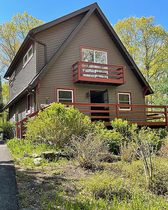 ESTATE SALE! Situated on a beautiful 1.28 acre parcel this 3 BR, 2 Bath Contemporary Chalet has lots of charm and is ADORABLE! Relax in the sunroom and watch the snow fall or the sun come up. Your plants will love it! Large wraparound deck. Balcony off Primary Bedroom on the 2nd floor is a perfect way to start your day. Plus it also has a stone fireplace! Romantic and cozy! Seller was an avid Gardner and the property is fenced to keep Bambi and his friends out. Paved driveway leads to a 2 car detached garage.