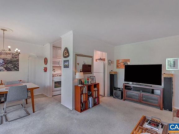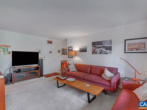Beautiful updated move in ready top floor condo three blocks from the historic downtown mall. Walking distance to UVA, Dairy Market, and the shops and restaurants on West Main St. Open plan, abundant natural light, outdoor patio, winter Blue Ridge Mountain views. New lighting, updated kitchen with oak cabinets/white appliances/tile floor/gas range. Updated bathroom vanity/mirror/lighting. Tiled bathroom floor, and tile shower surround over tub. New Karastan carpet over parquet floors in living/dining. Parquet floors in bedrooms. Both bedrooms have generous closet space. New HVAC with air scrubber. LED lights with dimmers in bathroom and bedroom. LED lights in kitchen. Dogs are not allowed. Short term rentals are not allowed.