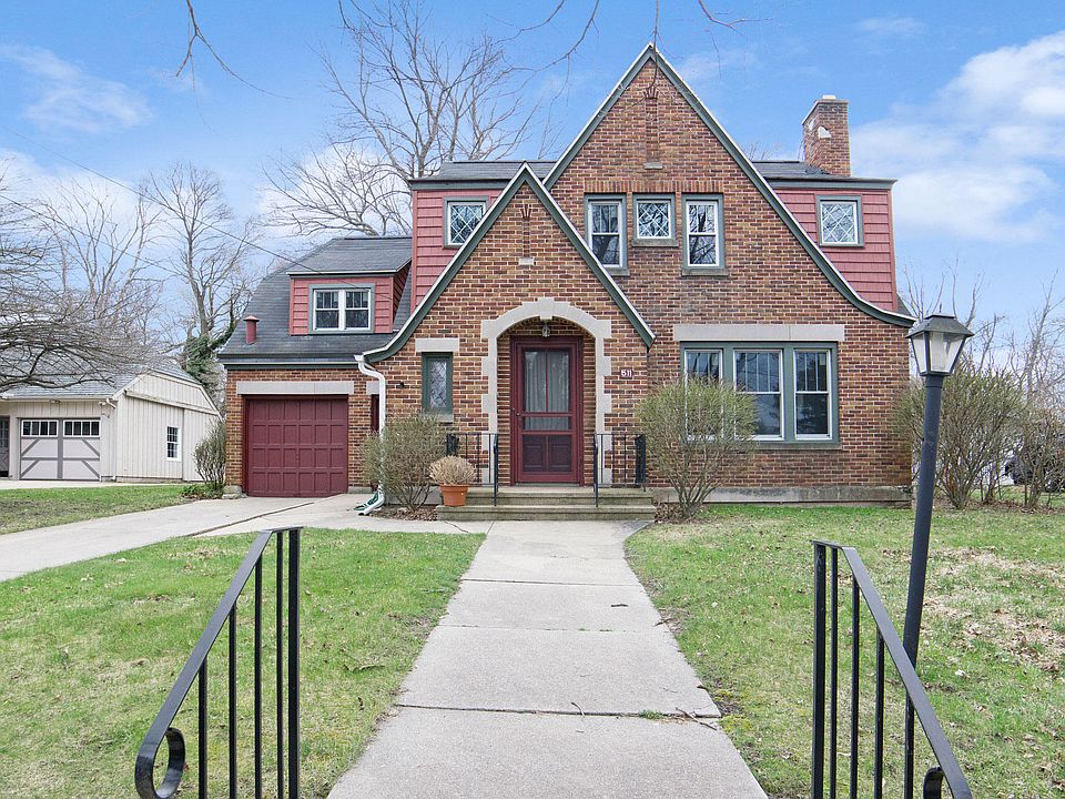 Beautiful English Tudor style home in one of the most desirable areas of the port city of Manistee, Michigan. Renovated & restored to almost new condition in 2016/2017. 2.5 stories w/ brick, cedar shake & vinyl exterior in new and/or great condition. 27 custom-made new Energy Star windows were installed in 2016 to greatly improve the heating efficiency for the home. New roofing in 2016. Interior features ¾inch light oak flooring throughout which was restored in 2016 to its full beauty. Light oak crown/base moldings & solid oak doors w/ brass fixtures throughout. Vintage tiled hearth fireplace, beautiful open staircase & stained glass accents! Leaded glass/oak French doors between the DR/LR. Arched openings provide great, open areas for family fun & entertaining. Renovated kitchen w/ beautiful new lighting fixtures, new granite top counters, new country style sink & pull faucet, new disposal, & all new, top of the line Whirlpool appliances.