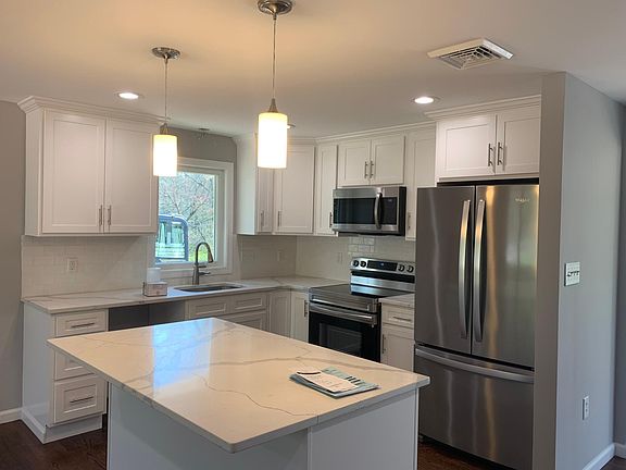 Rent is $2,800, utilities are not included. Single family home, 3 bedrooms on main floor, 1 full bath on main floor and 2nd full bath in lower level. Recently remodeled with all new appliances, washer, dryer, and dishwasher included. Lower level has large finished rec room or optional 4th bedroom with walkout to finished patio. Dogs allowed - max 2, $250 pet deposit, plus $100 a month pet rent. Yard work included. Oil heat, central air, wood fireplace, and cable connection in living room. Hardwood floors. Non-smoking, no cats. **Please fill out an application, pending credit approval, we will schedule a showing. Renter responsible for all utilities. Yard work is included in rent. Dogs allowed - max 2. No cats. No smoking.