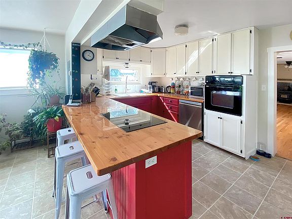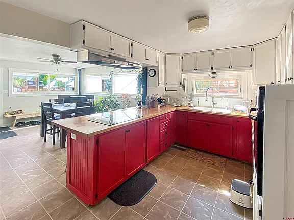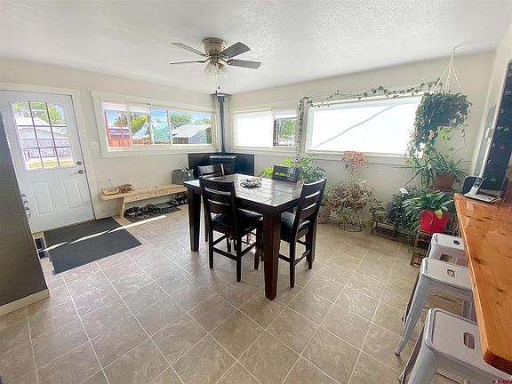 Welcome home to this adorable 3 bedroom, 2 bathroom home in Mancos, Colorado located on over a quarter acre lot. Walk in to the large main sitting room with original hardwood floors that could double as a game room. There is a large slider door that leads out to the patio space on the west side of the yard. The primary bedroom is located on the main level with an updated bathroom and large closet. Upstairs is an open loft area with the second bathroom and a bedroom on either side with multiple closets. Back downstairs the kitchen has beautiful butcher block countertops and is open to the dining space with large windows to let in plenty of natural light. A cozy family room is just off the dining room and the back door leads out to the huge backyard complete with multiple fruit trees, strawberry patch, and garden space. There is a chicken house with surrounding fence and a storage shed as well as an adorable historic cabin covered in vining virginia creeper. The cabin has power and a cellar built in under it for cold storage. There is a large concrete slab with a gate that can open to the alley access to allow for additional parking in the back and a basketball hoop. The surrounding privacy fence is sturdy and functional. The two car attached garage has extra space for tools and workbench and there is plenty of parking in front of the garage and the privacy fence opens in the front as well to allow for parking just inside the gate on the graveled area. Great space for RV parking. The current owners have put a ton of hard work and love into creating a beautiful, up to date home ready for its new owners including new stucco siding, all new Anderson windows throughout, updated bathrooms and so much more. Located on Bauer Avenue just a few blocks from the school, coffee shops, restaurants, park and more. Call for a showing today!
