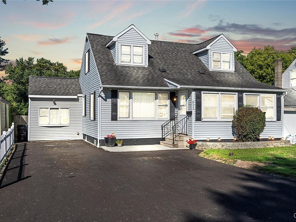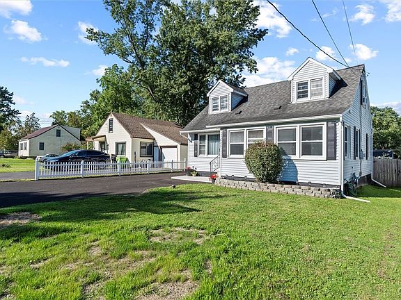 Welcome to this beautifully maintained 4-bedroom, 1.5-bath Cape Cod offering over 1,800 sq ft of comfortable living space in a convenient Mattydale location near rt 81 & the thruway. Inside, you'll find a spacious and inviting layout, featuring an oversized great room with sliding glass doors that lead to a peaceful, fully fenced backyard with a large deck and awning that has an additional concrete patio to the side of the deck that can accommodate an added jacuzzi or lounge area perfect for relaxing or entertaining. The home offers first-floor laundry, a bright enclosed Florida porch, and updated vinyl windows and siding for low-maintenance living. Recent mechanical upgrades include a NEW furnace, NEW central A/C, newer hot water tank, and cube block basement windows. The extra-wide newly paved driveway adds convenience and curb appeal. Move-in ready with plenty of space, comfort, and modern updates throughout will make you want to book your showing today! Don't miss out, this home has so much to offer for years to come!