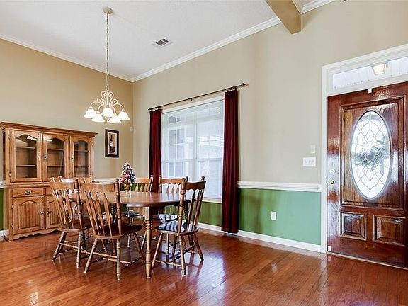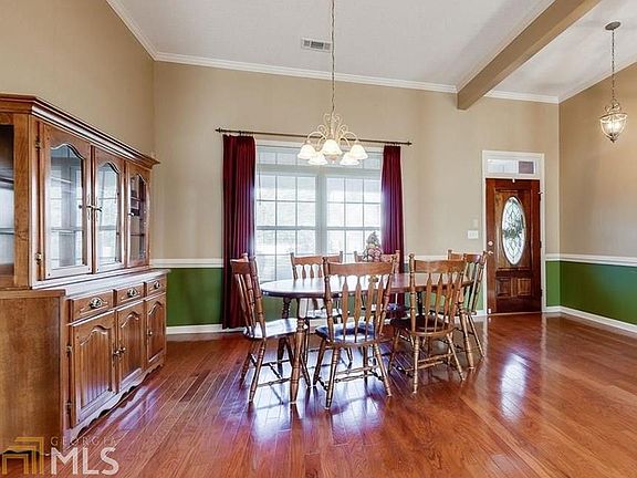 With nearly 2000 sqft this home has 3 bedrooms and 2 bathrooms. Foyer entry with an open formal dining room, great room with high vaulted ceilings, wood burning fireplace and hardwood floors. This floor plan is great for entertaining with a pass through in kitchen and two entry and exit points. Kitchen has lots of cabinets, pantry closet & breakfast room overlooking deck and backyard. Just off the master bedroom is an attached bonus room that could be a nursery/office/craft room that also has a walk in closet. Master bathroom has a large stand alone shower, attached walk in closet and an additional linen storage closet. This is a split bedroom floor plan. Large laundry room, attached 2 car garage PLUS a Detached oversized 2 car garage with full stairs to a second floor workshop/extra storage with nearly 1200 sqft garage. Privacy fenced yard. Gutters on home. Wood deck and screened gazebo. Sprinkler system in front and back yard serviced by a separate well. HVAC just 2 years old.