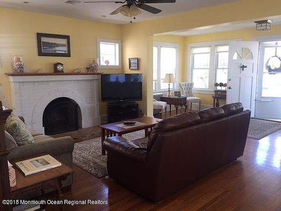 Located in Bradley Beach's desirable south side, this home has a spacious open floor plan with a newer kitchen, hardwood floors and wood burning fireplace. Three bedrooms and one full and one half bath. Enjoy summer breezes on the rocking chair front porch. You'll also find a rear deck and outside shower and driveway for off street parking. Just a wonderful year-round residence or the perfect summer getaway.