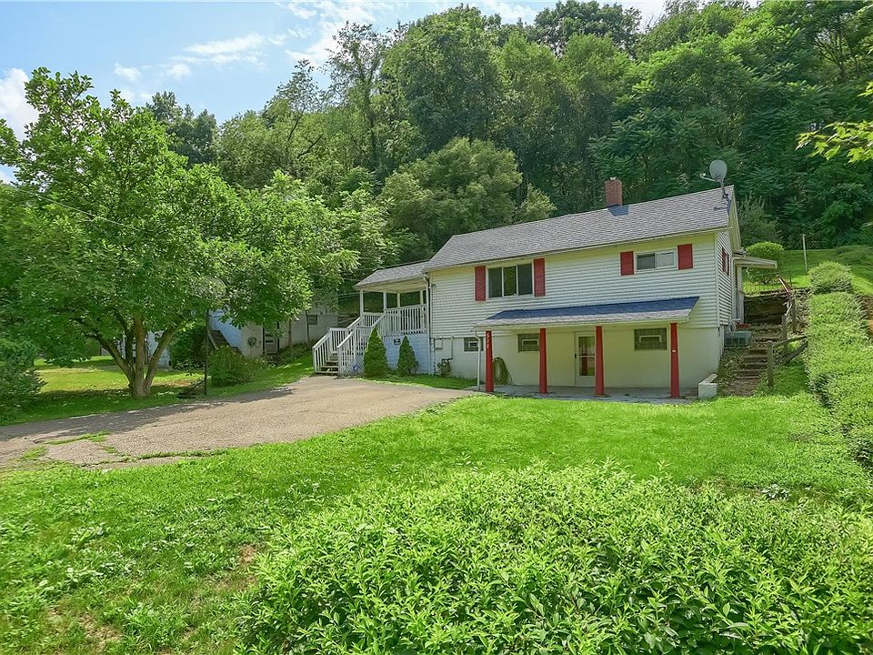 2 Covered Porches to relax and unwind throughout the Summer months! Wooded Views with lush greenery all around! Ceiling Fan and Built-Ins in the familyroom! Cozy Eat-in-Kitchen with ceiling fan, Appliances, double stainless steel sink and lots of cabinetry! Two Bedrooms or make one a home office with loads of closet space! Full Bath with Tub/Shower combo with sprayer and additional cabinetry for storage! Fully equipped Laundry with double laundry tubs! Glass Block windows to let the light in but keep the privacy and security! Circuit Breakers! Newer Roof! Large area for off street parking for additional guests! Convenient access to 22, the new 576 Toll Road and the Airport! Minutes to all the shopping and restaurants and the walking/biking trails! Welcome Home!