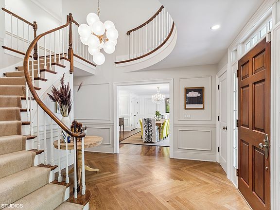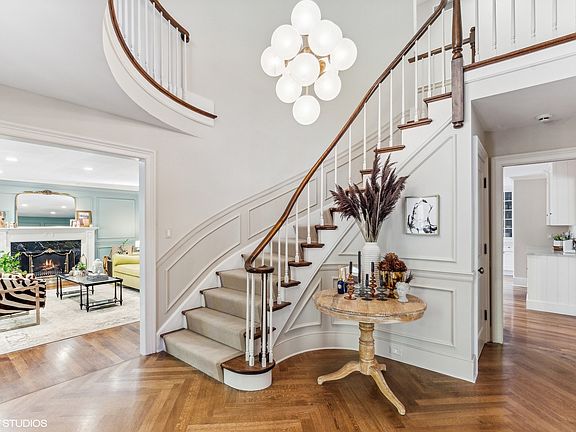 Here's an incredible opportunity to be in Lake Bluff, east of Moffett on over 1.5 acres of private landscaped grounds with lots of room to spread out both inside and out. This all-brick updated Colonial with 4 bedrooms and 4 baths, plus a first-floor office (or a 5th bedroom option) includes almost 5,400 square feet of above-grade living space. One of the best features of all is the brand new detached 2 1/2 car secondary garage that offers an incredible opportunity as a multi-functional space. Featuring vaulted ceilings, radiant heat floors, LED lighting, and commercial-grade epoxy floor coating, this space is perfect for the car enthusiast or for use as a workshop, studio, or amazing kid's play space/game room. Inside the main house, highlights include brand-new herringbone pattern hardwood flooring in the foyer, large living and dining rooms, impressive custom millwork, and updated lighting fixtures. The large kitchen features custom Christopher Peacock white cabinetry with beaded inset doors, new quartzite countertops, new tile backsplash, and Viking appliances. A sunny breakfast room provides access to a bluestone patio. Chic lounge room with high-end designer Farrow and Ball wallpaper, gas fireplace, plus a wet bar with custom cabinetry and under-counter wine refrigeration. Large family room with gas fireplace. Upstairs is a spacious primary suite with a fireplace and vaulted ceiling, a separate dressing room, and a primary bath with double vanity, a large shower, and a soaking tub. Three additional bedrooms, one en suite, and a hall bathroom complete the second floor. An attached three-car garage brings the total garaging on the property to 5 1/2 spaces. Other wonderful features include an elevator servicing the 1st and 2nd floors, bluestone patios, landscape irrigation, a generator, 2 HVAC systems, a new fire pit, a koi pond, and fenced-in "pet turf" dog play area. Many recent updates by the current owner plus newer windows, roof, generator, HVAC systems, and sump pumps by the previous owner make this an incredible opportunity to own this special property.