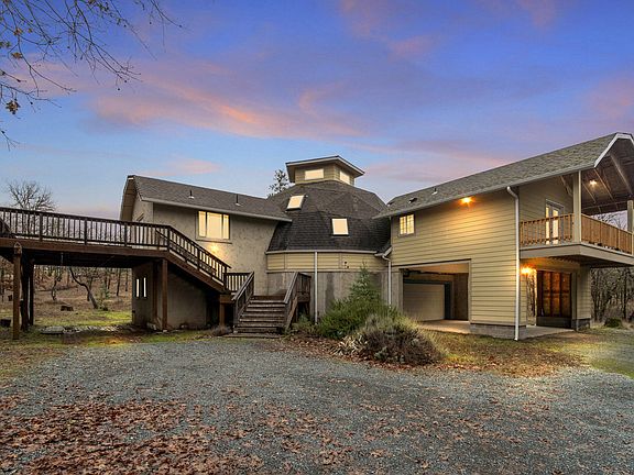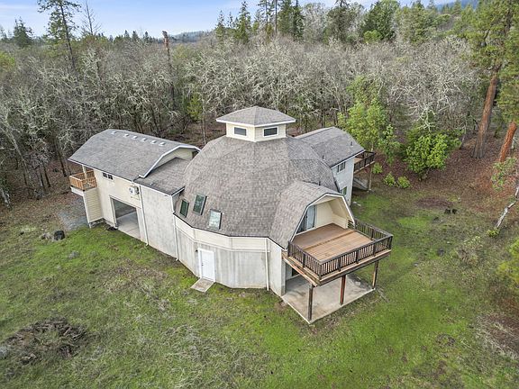 Experience the extraordinary with this truly original geodesic dome home! The breathtaking great room features an open floor plan seamlessly connected to the kitchen, creating an entertainer's dream. Step out onto multiple decks and take in stunning views of the surrounding landscape. Radiant heating ensures year-round comfort, while the central vacuum system simplifies cleaning. Nestled on nearly 4 acres, this 2895 sq ft home offers endless possibilities. Enjoy the convenience of being just minutes from I-5, downtown Grants Pass, and Merlin, while still having ample space for your vision. This property is ready to meet all your needs with RV parking and hookups, an oversized garage, two carports, and more. Don't miss the chance to own this unique masterpiece—schedule your private showing today! Seller is highly motivated!