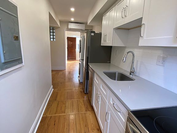 SPECTACULAR NEWLY RENOVATED This beautiful, cozy and completely renovated one-bedroom apartment located in a quiet neighborhood in Narberth, PA is available immediately for rent. The apartment is on the first floor in a six-unit building which offers you bright and spacious living room, kitchen/dining and bedroom, with brand-new central heating and air conditioning. You will enjoy the modern kitchen with quartz countertops, with brand-new cabinets and appliances including stove, refrigerator, microwave, dishwasher, garbage disposal and plumbing fixtures. There is also a brand-new stackable washer dryer in the unit for convenience. The bathroom is completely renovated with a brand-new bathtub, floor, and shower tiles, pedestal sink, toilet, and plumbing fixtures. The bedroom is spacious with a brand-new ceiling fan installed. There are three closets in the unit. The hardwood floors throughout the unit have been refinished, and brand-new recessed light fixtures have been added. Storage locker is available, as well as space to store bicycle. This is a lovely apartment located in Narberth in the Lower Merion School District, which was named as one of America's 100 Best Communities for Young People. Narberth is about 8 miles from Philadelphia. It takes approximately 10-15 mins to walk from the apartment building to the train station in the center of the town, making it easy to commute to the city or surrounding boroughs for work or to go to school. The downtown area is also great for shopping and dining. Thank you for your interest in this apartment. Feel free to reach out and we are happy to offer you a tour of the unit or answer any questions. Looking forward to hearing from you. At lease signing, the first month's rent, the last month's rent and security deposit are due. Owner pays for water and is responsible for all maintenance. Renter pays for electricity and heat. Apartment is newly renovated and smoking is not permitted.