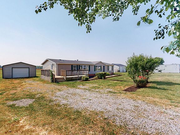 This comfortable 3 bedroom 2 bath home on 1.08 acres of beautiful land comes with fresh, new paint, trim, and flooring throughout. It has a brand new HVAC, updated kitchen cabinets, countertops, and a spacious detached building.
