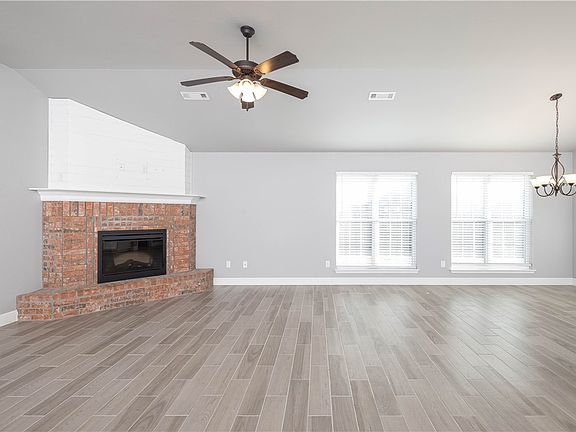 Discover your like-new home in this 4-bed, 2-bath, situated on a corner lot. With over 2000 sqft, an open concept, and charming brick fireplace; this residence exudes warmth. Kitchen is equipped with gas range, granite counter tops, walk in pantry and an oversized island for prep & guest seating. Primary suite offers separate vanities, large walk-in closet and shower, along with relaxing soaker tub.