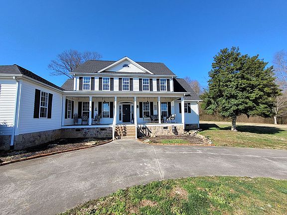 Dream Home! All the boxes are checked, 1) spacious 3093 SF 2) Private 5 acres surrounded by farms. 3)Location convenient to I75 to Knoxville or Chattanooga. 4) amenities finished garage, concrete circle drive, 18 1 2 foot ceiling with clerestory windows, transom light with stained glass, front door with sidelight and fan light, fluted columns, kitchen with French country and bar sink, custom cabinets, tile walk in shower, his and her sinks and much more, 5)updates New flooring, new paint, and 3 year old roof.Don't miss your chance on this one. Seller's even giving $500 toward home warranty of your choice.