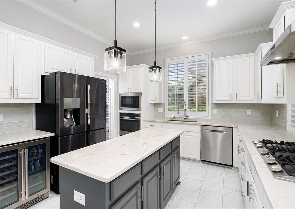 How about an UPDATED, immaculate Huntington home in TWIN CREEKS on an OVERSIZED corner lot with a POOL & SPA?Beautiful hardwoods or tile floors throughout,no carpet,even hardwoods on stairs!Formals located off of entry,don't miss large Pella picture windows viewing beautiful backyard or updated lighting.Spacious family room light & bright with corner FP,gas logs.Your dream kitchen features leathered Taj Mahal quartzite tops,subway tiles,updated appliances including wine fridge,5 burner Dacor gas cooktop,Bosch dishwasher.Master is split from other bdrms & has big bay window viewing backyard,jac tub, sep shower w seamless glass,granite countertops, walk in closet.Upstairs are 3 bdrms,2 full baths, gameroom. Beautiful private backyard with resurfaced in 2021 pool and spa, plenty of yard remaining, plus your own grapevine if you want to make your own wine! Also:Plantation shutters,nest thermostat,3 Trane HVAC units replaced 2017,roof replaced 2014,interior paint 2021.Tankless water heater.