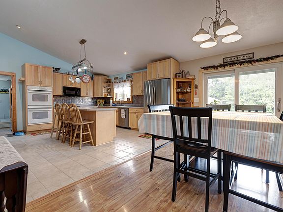 Custom built 1/2 log sided country home with quality building materials and open floor plan. Home has new architectural shingles, pella windows, full front and back decks and solid wood maple cabinetry. Drawers are soft close, and ample counter areas for kitchen feasts. Great gathering place with 15 foot high cathedral ceiling in living room that also flows into the kitchen/dining areas and study/den area. Open views from most rooms out on the park like setting of pines and well kept 5 acres of country space. Granite counters in baths, 6 panel solid wood doors throughout, tastefully decorated. Matching outdoor utility building, side chicken house, canopy bbq outdoor living space. All appliances in kitchen convey. Ready to move in!
