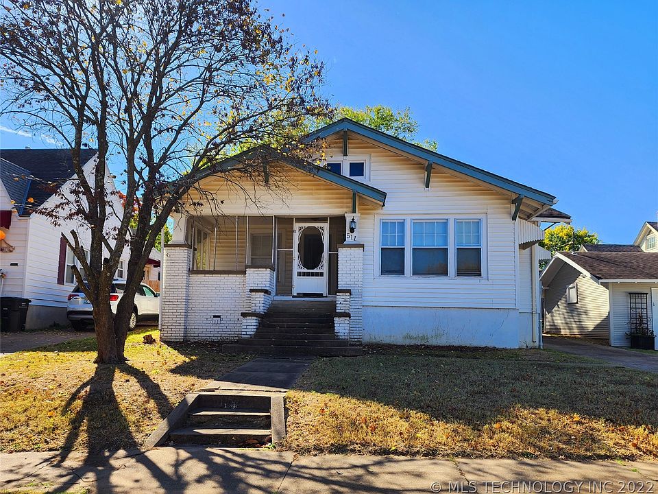 This 3 bed 2 bath w/ bonus rooms up and down AND a partial basement is situated in a GREAT downtown location! It is easily within walking distance to Kane Elementary and Bartlesville High School. The vinyl siding helps keep exterior low maintenance. Enjoy sitting on your screened in porch or turn the treed back yard in to an Oasis. The detached garage and attached work area could be a neat place to tinker with your projects. With some vision and TLC this place will be a beauty again! Just check out those gorgeous original hard wood floors!! Don't wait....Let's make it yours today! Offered "AS IS".
