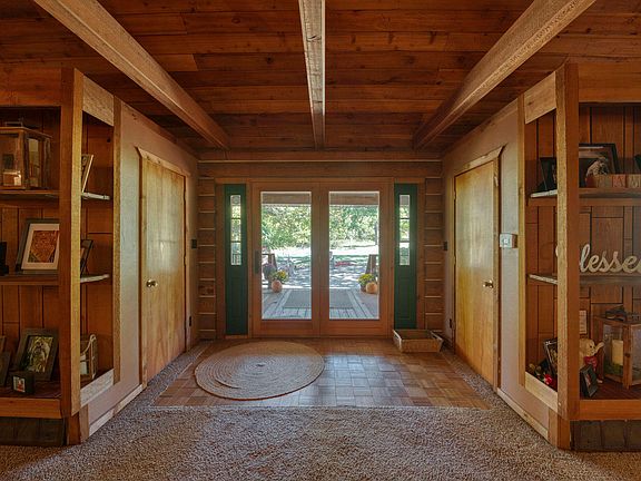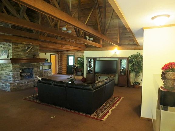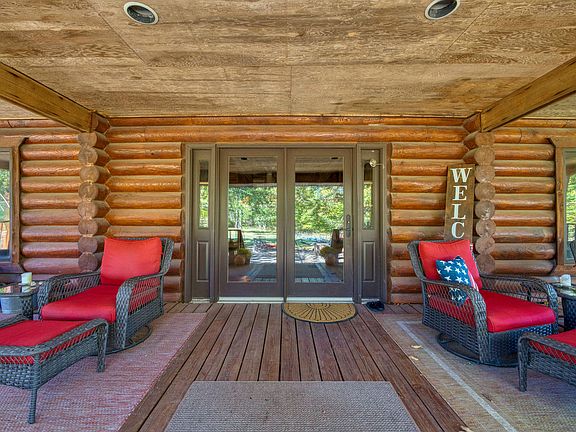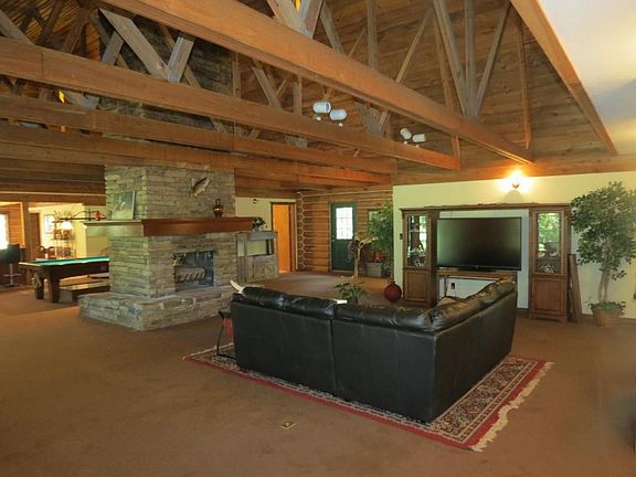 Peace and serenity await you on this amazing, hard to find property offering 20 acres of privacy and a log cabin with over 4100 sq ft of wide open living space! Such a beautiful setting with lots of trees. This is country living at its very best. 12 X 30 covered front porch. Once you step inside you notice the stunning wood and beamed ceilings that offer so much character. The living space is oversized! Large stone see through woodburning fireplace! Spacious kitchen with ample cabinetry, refrigerator included, big island and dining area. Huge living room with multiple areas that can serve as a rec. area. There are three bedrooms with two on the main floor, one of which is the master bedroom. There are also two bathrooms on the main floor. One of the bathrooms has two showers. There are two separate upstairs living spaces. One makes the perfect third bedroom with 1/2 bath. The other would make the perfect office or 4th nonconforming bedroom (no window or closet). Hot tub, washer and dryer included. Stone BBQ grill. Storage shed with shelving. Brand new roof! Water softner