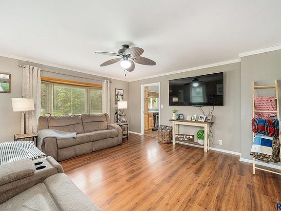 ***NEW PRICE*** Welcome to this charming 1.5 story home in Dell Rapids! Situated on a spacious corner lot. Just a quick short walk to downtown and the city park with miles of bike paths & entertainment. With 4 bedrooms, 2 baths, and a large 2-car garage, it has plenty of space for everyone to enjoy. The lower level awaits your personal touch to add an additional family room or bedroom, and outside, there's room for your boat or camper. Inside, the galley kitchen with beautiful Knotty Alder cabinets and a breakfast bar complete with gas stove is the perfect space for cooking & entertaining. The open living and dining areas are perfect for gatherings with friends & family. Enjoy peaceful nights on the newly painted covered deck and let the kids and dog play in the great yard with mature trees. Don't miss out on this delightful home!