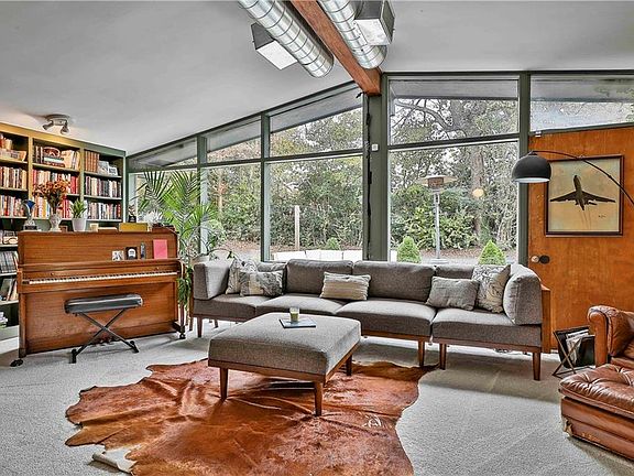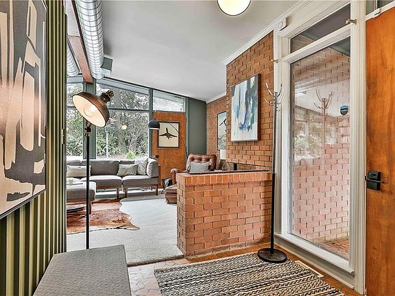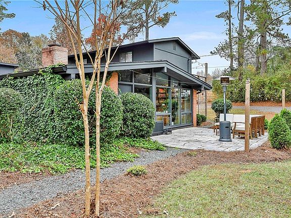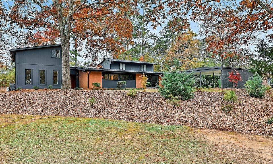 Welcome to your mid-century modern dream home. Nestled within walking distance to Main Street in the expanding town of Hogansville, you'll find this recently upgraded home to have all the sophisticated and sleek character for a 1950s home you could imagine. Start by parking under your covered carport and make your way inside with the option to head into your library with builtins with expansive natural light from your wall of windows or the option to head into your beautiful dining/living area. The kitchen is the hub of this home updated with quartz counter tops that showcase the homes solid wood cabinets. While cooking, you'll never miss the conversations with this centralized location to the dining and living area. When you've finished and want to relax make your way to the large living room and cozy up in front of your wood burning fire place. Upstairs you'll find the privacy every owner suite should hold along with a private balcony, luxurious owner bathroom with separate shower, soaking tub, double vanity, and large walk in closet. You have plenty of room for your guests, since this house in a 4 bed 4 bath with the main dwelling hosting 3 beds and 3 baths. The split floor plan has your owner suite upstairs and the two bedrooms and two full baths down the hall off the dining area. Attached with a breeze way, you'll find the perfect spot for rental income or for a multi-generational living option in the 1 bed 1 bath apartment with quaint kitchen. Enjoy entertaining in your private backyard with cover patio for grilling. Don't miss this architectural delight. It is waiting for you!