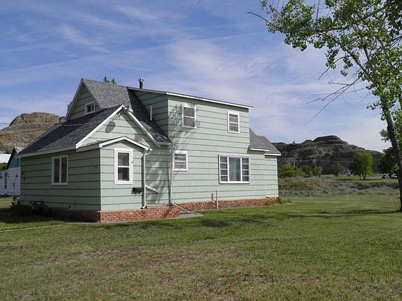 Enjoy the views to Makoshika State Park and wide open spaces all while having city water and sewer availability. This 1944 two story, two bedroom, 1 1/2 bath home with potential of two additional lots. Home has large living room with several large windows to take in the view of the hills, kitchen with adjoining large dining room, laundry room and recently renovated full bath are on main floor. The upstairs has two bedrooms, loft area and 1/2 bath. Home has central air conditioning and a new roof. There have only been two home owners on this property and it has been very well cared for. There are so many options available to the new owner of this property and an excellent value!