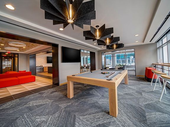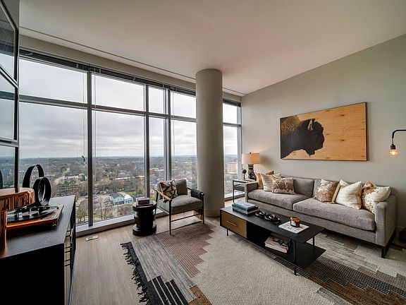 Sparkling poolRefined finishes throughoutSmart-home technologyRooftop skydeckFireside loungePanoramic city viewsFloor-to-ceiling windows
