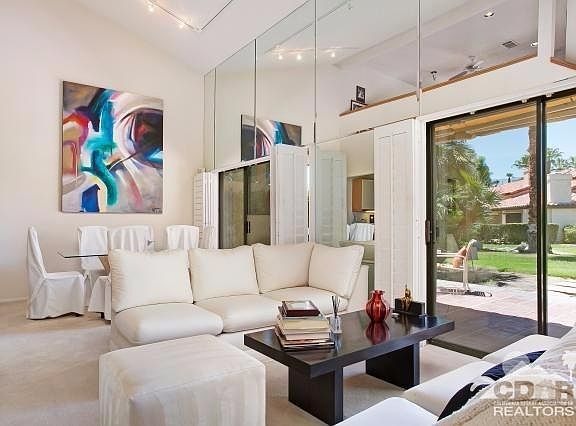 This charming home is perfect for full time or second home owner...The quiet complex is surrounded by a park like setting, clubhouse, tennis courts and community pools..2 master Bedrooms plus a family room/den providing a perfect retreat..The views from this home are among the best in the complex, along with trickling streams and waterfalls.. Plantation shutters add to the contemporary look of this home as well.. The California custom closets are abundant..Full on mountain vistas can be enjoyed from your living room and patio, the it's wide greenbelt....Just minutes from EL PASEO, College Of The Desert and many golf courses, (Desert Willow !!)Can be sold with or without furniture..