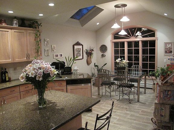 Extended chef's kitchen w/separate breakfast room, living room, dining room, family room with fireplace, entertainment room, deck, 2 zone central air, sprinklers, alarm system, low taxes.