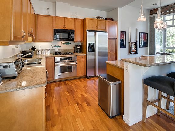 Enjoy downtown living from your own rooftop deck! Highly sought after 2 bedroom, 2.5 bath townhome with loft. Nearly 2,000 sq ft of living space & a corner location affords an abundance of light throughout. In addition to the rooftop deck, this unique home boasts a multitude of outdoor areas and private decks. Granite counter tops, stainless steel appliances, hardwood floors, brick façade, vaulted ceilings, & custom built-in shelves accentuate this home's lure!