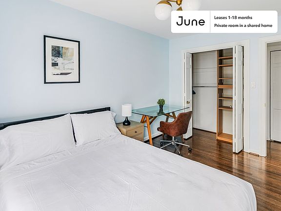 This Queen room in Southwest Waterfront is available on a 12 month lease or a flexible short term (31 to 364 days) lease. You pick your custom start and end date. Monthly rent rate is determined by furnishing preference, move-in date and move-out date. Speak to a June representative for recommendations on the best stay duration for the lowest rate.
