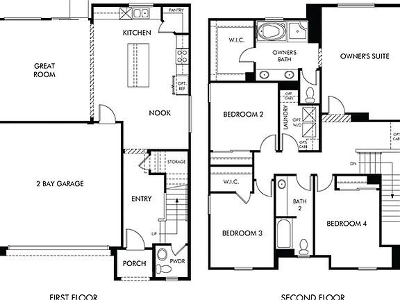 The Residence 4 kitchen overlooks the expansive great room, and upstairs features a five piece master bath. White cabinets, gray granite countertops, white subway backsplash, rustic EVP, tile and neutral carpet in our upgraded Posh package.