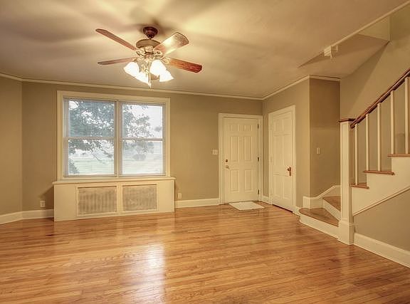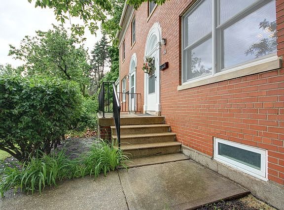 Classic Georgian Colonial brick home is half duplex/townhouse style in pristine condition with gleaming hardwood floors and fresh paint through out! The main level offers a galley kitchen with new flooring and refinished cabinetry, formal dining room and spacious living room. Lots of natural light. 2nd level has the main bath with new flooring and vanity, 3 bedrooms with hardwood floors. The basement offers space for recreation or family room plus another full bath. Utility room and laundry area are in basement. Exterior access to the basement too! New storm doors. 1 car detached garage. Very clean and move-in ready home.