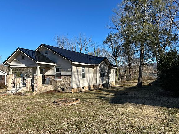 This inviting home is nestled on a charming street in a walkable neighborhood in  Etowah.  The 100x150 lot has a lovely yard, a few mature trees, and a separate workshop that would serve equally well as a craft cottage or traditional storage building.  Step inside the home to a large living room with gleaming hardwood floors and a fireplace.  The kitchen features custom cabinets and enough space to add a breakfast area, an island, or a pantry.  There are three bedrooms (one with a fireplace) and two full bathrooms.  Designated laundry area.  The fireplace has been closed off but could be perfect for ventless gas logs.  New metal roof on both the home and the outbuilding was completed in Feb 2024.  Cellar.  Driveway is pair of concrete runners.  Rock and concrete walkways from house to outbuilding and into yard.  SqFt estimated; tax record does not appear to include later finished areas; buyer to confirm.  Nearby pool, splash pad, playground, walking trail, and more.  Don't miss out - come see this one today!