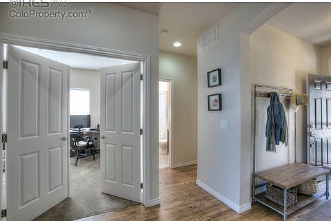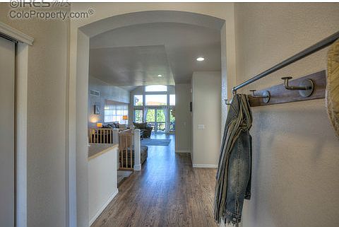 Gorgeous ranch home in Lyons Valley Park with contemporary finishes & many upgrades! Close to Steamboat Mtn, hiking & bike trails. 2 blocks to schools. Beautifully landscaped with trees, perennials, fenced garden & back yard. Open floor plan, walk-out deck. Vaulted ceilings, hardwood floors, gas fireplace, floor to ceiling windows w top-down shades. Breakfast bar, granite slab counters, Maple Tolani Kona cabinets. KitchenAid stainless appliances. Finished 3 car garage.