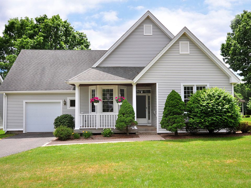 A rare find! This beautiful, two bedroom and two full bath Ranch condo is nestled in the very sought after Walden Woods community. It's charming curb appeal is enhanced by a lovely, covered front porch. The kitchen features an abundance of oak cabinetry and countertops, professionally refinished hardwood flooring, recessed lighting and a breakfast nook. Entertain dinner guests in the formal dining room with stunning architectural columns and 9' ceilings. After dinner, invite your guests to join you in the spacious living room with a vaulted ceiling, gas log fireplace, a wet bar and recessed lighting. Retire to the spacious primary bedroom with an en suite full bath and first floor laundry area. For those who work from home, the second bedroom is ideal for an office. A second full bath completes the main level. The partially finished lower level is currently utilized as a home gym. Relax with your favorite novel in the spectacular three season room. With summer's arrival, enjoy the luxury of an inviting pool, tennis and pickleball courts, a community garden, walking trails and a classic New England meeting house. The interior was professionally painted and offers a beautiful palette of neutral color. Tremendous value is found in the low maintenance vinyl siding, newer gas furnace and central air. Imagine living in a quiet and idyllic setting while enjoying the convenience of living in close proximity to shopping, dining and commuter routes. Come on...Let's take a look inside!