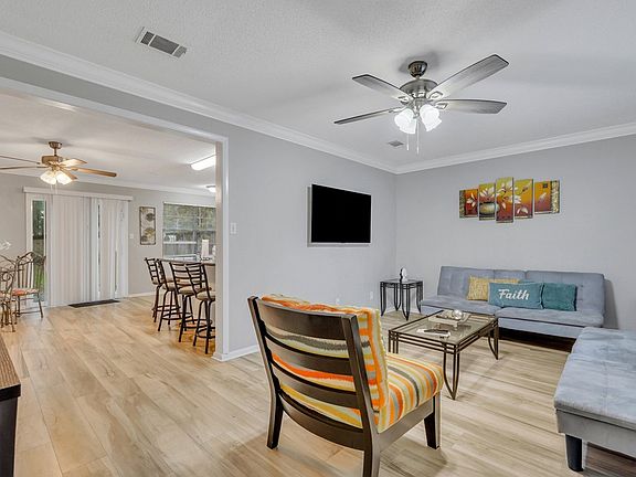 This beautiful home is in an amazing location with everything you need just minutes away including Fort Stewart, shopping, dining, parks, schools & recreation! Heritage Drive is a double culdesac with majestic trees lining the street. This brick home as a covered entry opening to a big, open living room. Luxury vinyl plank flooring flows throughout the home except in the kitchen and baths which have easy care tile. Crown molding accents the ceilings throughout the home too. The dining room and kitchen are just beyond with a sliding door to the huge backyard. The remodeled kitchen has crisp white cabinetry topped with granite counters with a glass mosaic tile backsplash & SS appliances. There's a breakfast bar at the peninsula and room for a breakfast nook off the kitchen. Also off the kitchen you find the laundry room and direct access to the garage. There are 3 spacious bedrooms including an owner's suite with a private bath. A second bath services the secondary bedrooms and guests. The enormous 1/4+ acre lot has a fenced backyard scattered with majestic trees. Looking for a new place to call your own? This is it!