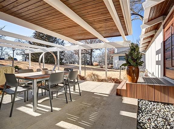 Calling all mid-century modern lovers! This completely remodeled 4-bedroom, 2.5-bath, Lake Quivira home embodies craftsmanship & modern design while preserving the original character. It features artistic arched ceilings, a statement Douglas Fir pivot front door, sunlight from every inch, a free-flow floor plan, and impeccable wood detail. The kitchen highlights new Heath tile walls, solid Walnut countertop, designer high-gloss cabinets, and top-of-the-line built-in appliances. The large main floor master is complete with office area and true spa bathroom. The lower level has been transformed into your perfect getaway with multiple walk-out abilities to private patios, wet-bar, fireplace, beautiful beam accents, 3-bedrooms, 1-full bath, and the cutest laundry room that tops it off. Every inch has been thoughtfully crafted from the new wool carpet/memory foam padding in the lower level, built-in medicine cabinets with outlets & storage, easy to clean cabinets & showers with frameless glass shower partitions, all dimmable lighting, to the new storm windows with UV protection to retain the beautiful woodwork. Enjoy all that Lake Quivira has to offer plus your private outdoor living oasis! With 4 outdoor living spaces from the brand new maintenance-free deck, 3 new concrete patio areas, to the large fire pit with panoramic views overlooking the 13th & 14th holes. So many updates, see disclosures for the full list! Mandatory one-time $25,000 membership fee & monthly HOA with incredible amenities!