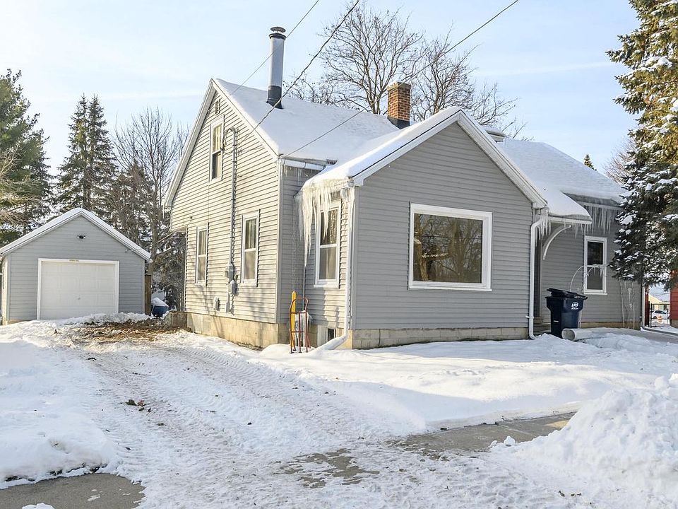 Charming 2 bedroom home within walking distance to stores and more. Enter into a extra large and open living room featuring a picture window and gorgeous brick accent wall. Kitchen includes an abundance of cabinet space and new flooring. Both bedrooms are spacious and primary includes a wall of built ins for extra storage. New updates in the bathroom include a tile shower surround, flooring, vanity, and some electrical. Need more space? This home boasts a walk up attic waiting for your finishing touches, which could include another bathroom and bedroom or use for storage. The amount of useable space in the basement may surprise you! Perfect for storage, workshop area, laundry, or create a den. Park like yard and detached garage are also great perks of this home!