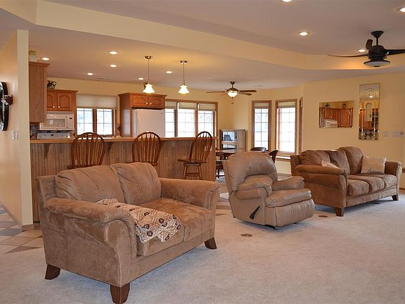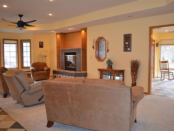 Spacious both inside and out! This beautiful ranch style home was built in 2004 with an open floor plan. The spacious kitchen features under cabinet lighting and a bar area. The kitchen opens to a large living room with fireplace and dining area. There is a full bathroom and 2 bedrooms in addition to the large master suite which features a large bedroom, walk-in closet, and bathroom with double sinks. The rear of the home features a nice sun room and deck. The front features a finished 2 stall